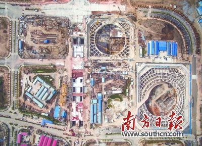 深圳前海自贸区工地沐浴在金色阳光下,建设场景热火朝天。
