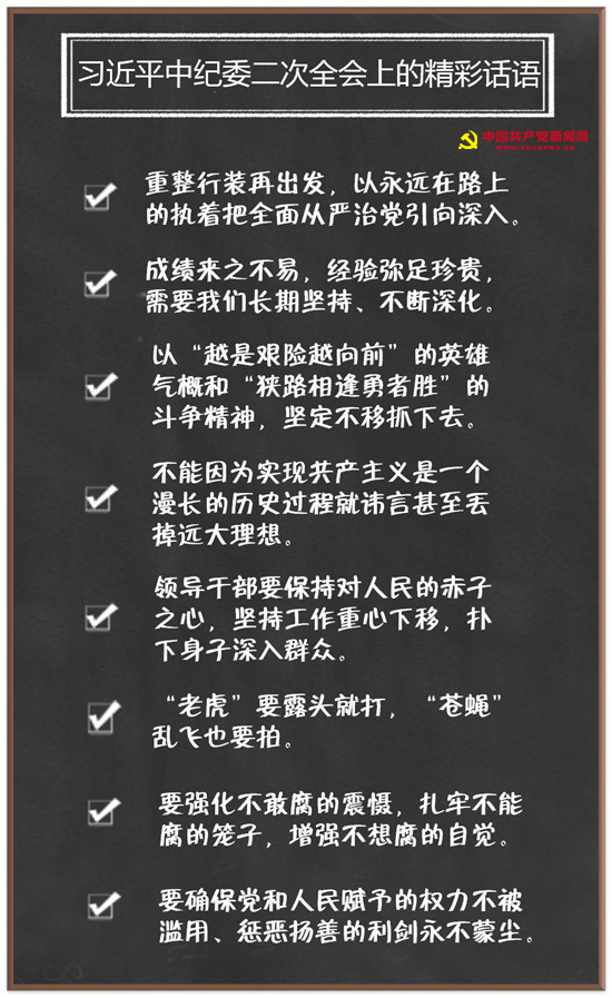 【编者按】1月11日上午,在十九届中央纪委二次全会上,习近平总书记发表重要讲话,站在新时代党和国家事业发展全局的高度,系统总结党的十八大以来全面从严治党的重要经验,深刻阐述党的十九大关于全面从严治党的战略部署,明确提出当前和今后一个时期全面从严治党的总体要求和主要任务。习近平总书记在会上的多个重要论述,释放重大信号,学习路上特别梳理出其中的精彩内容,以飨读者。