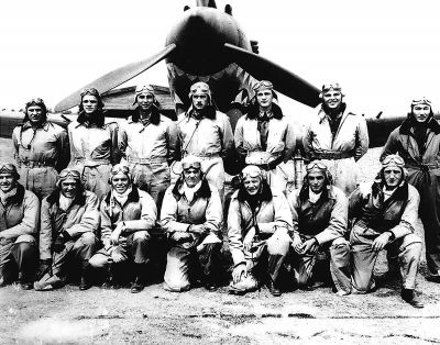 1942年1月, “地狱天使” 的三名队员在昆明巫家坝机场上摆出了美国狂野西部的标志性拔枪动作。